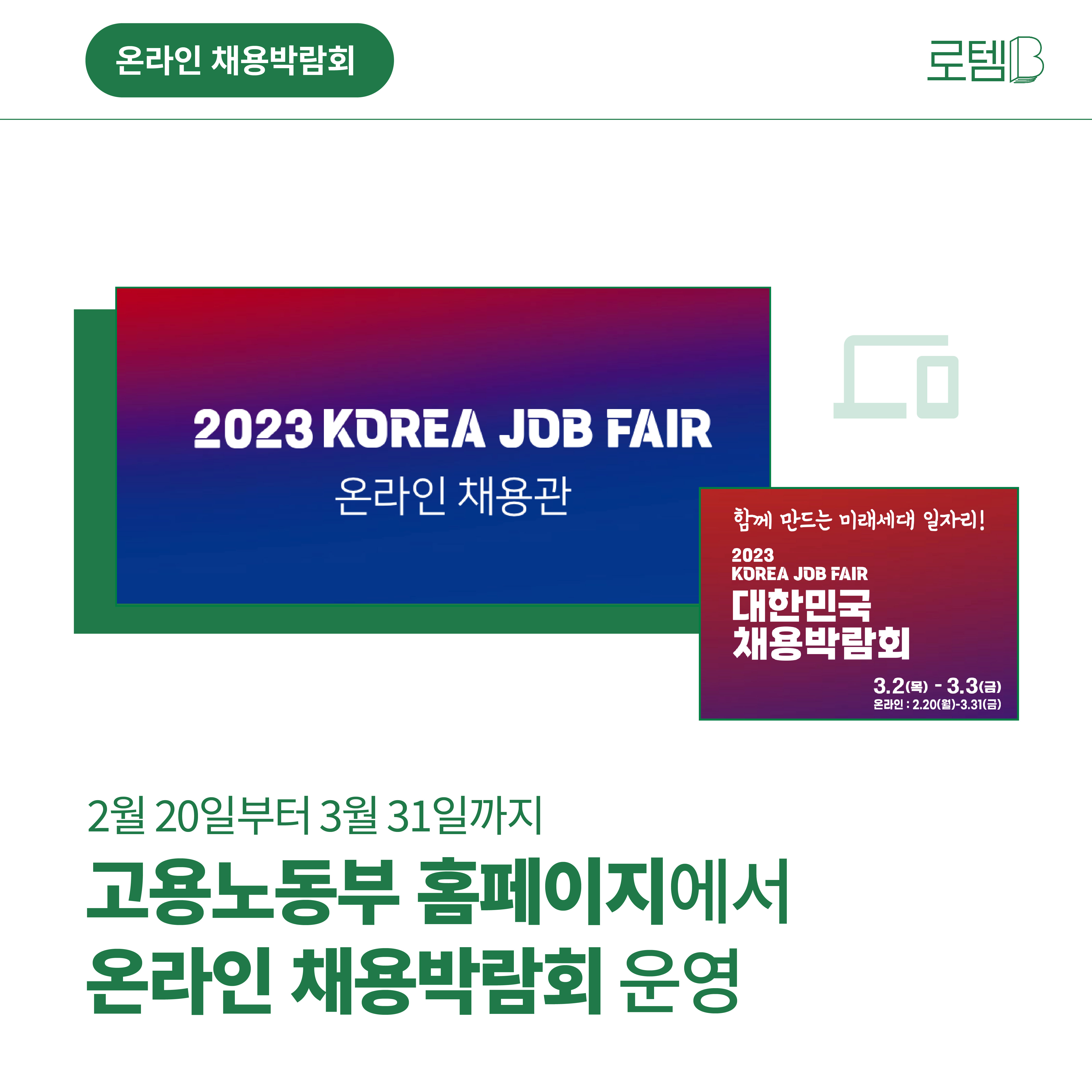 이번 취업박람회를 놓치셨다면 걱정하지 마세요! 고용노동부는 공식 홈페이지(www.koreajobfair.com) 이를 통해 온라인 채용 박람회를 운영할 계획이다.